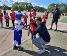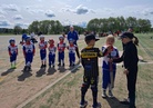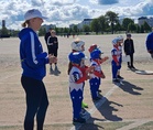 Koko talvi on treenattu ja nyt oli vuorossa oikeat pelit. Joukkue on ikärakenteeltaan 4-6-vuotiaita pelaajan alkuja tyttöjä ja poikia. Pienpelisäännöillä on suuri merkitys varsinkin tässä ikäluokassa. Ensimmäisessä pelissä vastassa oli Laitilan Jyskeen punainen G-joukkue. Oma juoksutili saatiin avattua hienosti neljällä juoksulla vastustajan juostessa kotiin 15 juoksun arvoisesti. Osa pelaajista oli aivan ensi kertaa pelissä ja pientä apua vielä tarvittiin alkuun, toisessa pelissä kahden tunnin tauon jälkeen muistissa oli vielä edellisen pelin opit. Vastassa ollut Mynämäen Vesan FG-joukkue koostui lähinnä äffistä, joten juoksuja heille syntyi kaikkiaan 22. Meidän Geet saivat kotiin pelaajan kolmesti. Joitakin pitkä päivä alkoi jo uuvuttaa, mutta urheasti jaksettiin loppuun saakka kuunnella Tarun ja Sallan ja Karrin ohjeita. Jokaisessa pelissä palkittiin tsemppipalkinolla yksi pelaaja joukkueesta. Nuoret tuomarit Elvi, Elias, Kalle ja Lenni hoitivat tonttinsa hienosti ja kioskissa riitti asiaikkaita varsin tuulisella kentällä. |