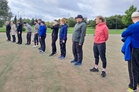 Ohjelmassa oli tietysti peli tyttöjen ja vanhempien kesken ja kahden vuoroparin jälkeen ottelu päättyi tasapeliin molempien joukkueiden kiitäessä kenttää ympäri.