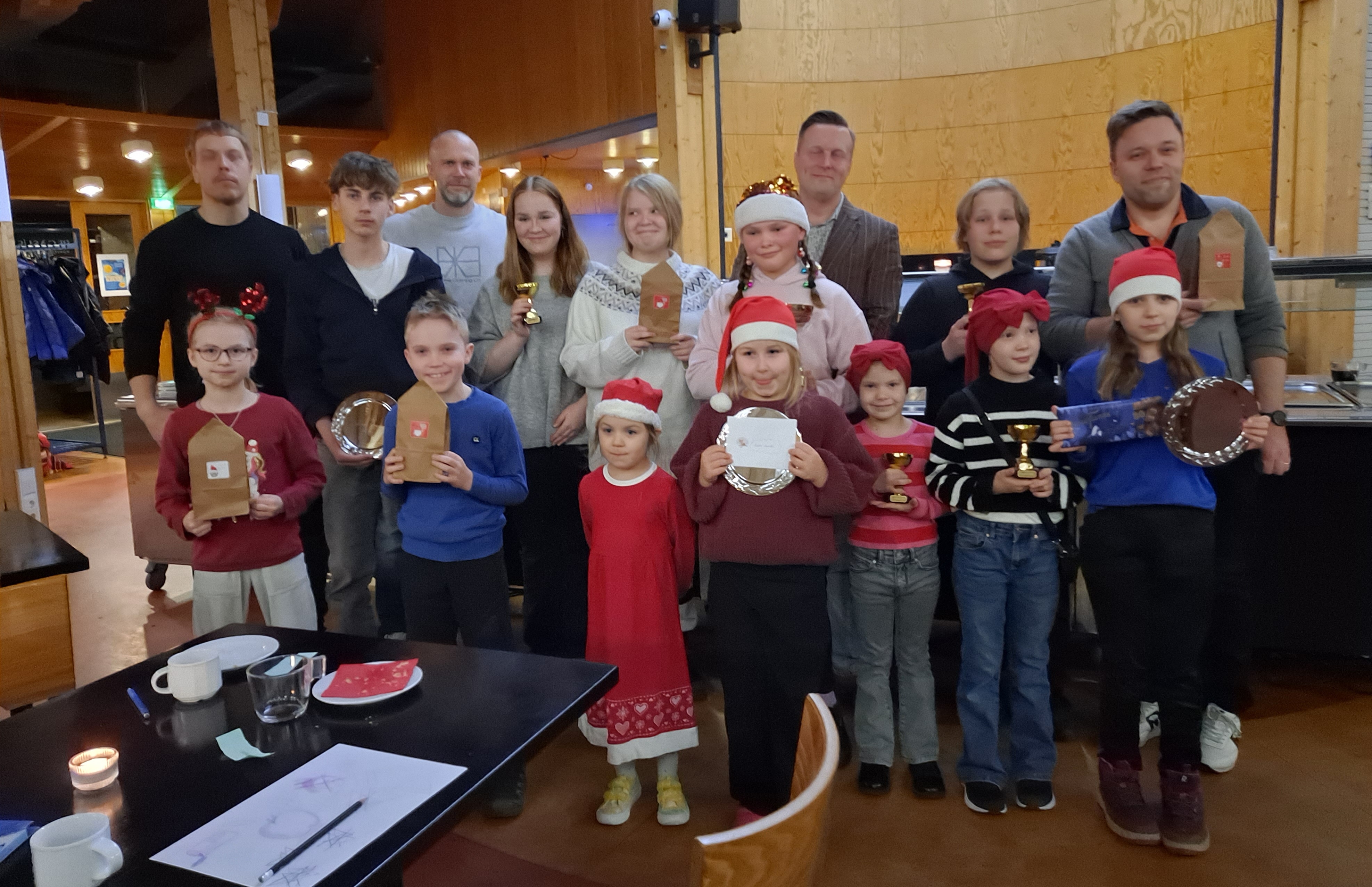 Pegasus Kupittaa tarjosi hienot puitteet seuraväen yhdessäoloon. Puiston hienot jouluvalot loivat kauempana lisätunnelmaa pimeään iltaan. Seuran puheenjohtaja Lasse Suvanto toivotti kaikki tervetulleiksi ja sen jälkeen päästiinkin maistelemaan hyvää riisipuuroa lisukkeineen. Tämän jälkeen julistettiin piirustuskisa Turun uudesta pesisstadionista ja innokkaat taiteilijat ryhtyivät töihin. Saatiin ilahduttava määrä hienoja piirustuksia. Vaali valitsi palkittavaksi viisi luomusta. Ruudussa pyöri myös kauden aikaisia valokuvia ja useampi löysi itsensä kuvista. Palkitojen jako aloitettiin perinteisesti joukkueiden Pallosilmä-pokaaleista: G-tytöt Ida Kivilä G-pojat Eeli Mäkelä F-tytöt Aino Kivilä F-pojat Kasperi Ilvonen E-tytöt Silja Leppänen E/D-pojat Voitto Aatola D-tytöt Minerva Mäntymäki C-tytöt Wilhelmiina Pärtty B-pojat Rasmus Halme Tämän jälkeen nauttiin jouluglogiä ja joulutorttu, jotka nekin olivat tosi maukkaita ja lisukkeita löytyi myös. Seuraavaksi palkinnot jaettiin näin: Vuoden tyttötuomari Elvi Hirvonen Vuoden poikatuomari Elias Peltola Vuoden valmentaja Enni Lamppu Vuoden pelinjohtaja Jani Kapuinen Kiertopalkinnon saajat : Vuoden naispelaaja Taru Viinikanoja Vuoden miespelaaja Miko Hännikäinen Vuoden pesisperhe Perhe Suvanto Vuoden Turku-Pesisläinen Joseph Hollingworth Illan päätteeksi jaettiin vielä lahjapaketit ja reimu vaan yltyi. Seuran tilaamat sukat olivat myös saapuneet ja tilaajat saivat mukaansa vaikka pukinkonttiin tilaamansa tuotteet. Jatkossa sukkia on myytävänä kioskissa 10e/pari. Kiitos kaikille osallistujille ja järjestelyissä mukana olleille. Tästä on hyvä jatkaa kohti Joulua ja vuodenvaihteen turnausta.