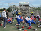 C-poikien viimeisestä kotipelistä SM-leirikarsintasarjassa kehkeytyi odotetun lainen trilleri. Aurinkoinen Kupittaa säteili kilpaa kotijoukkueen pelaajien kanssa pelin päätyttyä 2-1. Ensimmäinen jakso kääntyi aivan viime metreillä vierailijoille 1-2 juoksuin. Toinen jakso käytiin tasaisin ottein, kunnes Turku kuroi ensin kahden juoksun eron ja vielä viimeisellä sisällään kasvatti kaulaa yhden juoksun verran. Jari Leväsen johdattelemana Tahkon pojat yrittivät kuroa eroa ja siinä onnistuttiinkin, kun pallo kiisi kolmosjatkeelta ulos kunnarin arvoisesti. Toista jaksoa varjosti hieman Tahkon 2-kopparin loukkaantuminen ulkopelitehtävissä, mutta se ei kuitenkaan ollut ratkaisevaa. Tiukkojen vaiheiden jälkeen Tahkon viimeinen lyöntivuoro kuivui ns. kokoon ja välipaloilla saatiin tarvittavat rastit taululle ja riemukas jaksovoitto 5-4 oli toteutunut. Supervuorolla Turun pojille tuntui onnistuvan lähes kaikki ja tuloksena taululla upeat neljä juoksua. Tahko sai kavennettua vain yhdellä juoksulla, joten kaksi pistettä jäi Turkuun 2-1 (1-2, 5-4, 4-1) lukemin. Joukkueen pelinjohtajat Jesper Forsman ja Petri Hännikäinen olivat tuloksesta mielissään ja antoivat joukkueelle tunnustusta taisteluilmeen löytymisestä ensimmäisen hävityn jakson jälkeen. Perjantaina joukkue matkaa vielä Loimaalle ja sitten odotellaan Oulun Nuorisoleirin alkamista. katso taulukot tästä