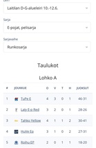 E-junnut ovat selvittäneet itsensä alkulohkonsa voittajaksi. D-poikien kilpasarjassa pelit ovat myös kulkeneet. Laitilan leirillä on ollut mukava tunnelma ja onnistumiset omissa peleissä tuovat lisäintoa joukkueille. D-poikien valmentajat Pekka Kaijula ja Petri Tiittanen iloitsevat joukkueen menestyksestä. Joukkueenjohtajana toimii Pekka Saarinen. Samaten iloitsevat E-junnujen valmentajat Alpi Virtanen ja Onni-Eemeli Laakso apunaan joukkueenjohtajana toimiva Sampo Peltola. Joukkueen vanhempia on myös ehtinyt paikalle jännittämään pelejä. Leiri päättyy huomenna sunnuntaina. |