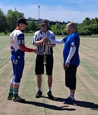 Pelin alussa seuran puheenjohtaja Lasse Suvanto ojensi onnittelut ylioppilaille Miko Saarinen, Lauri Soini ja Viljami Soini. Lauri Nikulainen saa onnittelut poissaolijana myös. Paljon Onnea jatkoon, kaikki ovat kohta siirtymässä armeijan leipiin kukin tahoillaan. Peli oli vastustajille ensimmäinen peli sarjassa ja miesten rajoilla. Myös hiekkanurmi oli ensi kosketus innokkaille sastamalaisille. Ensimmäinen jakso oli karata vastustajille, mutta viimeisen tasoittavalla kotijoukkue sai tehtyä tasoituksen ja jakso päättyi 4-4. Toiselle jaksolle kotijoukkue teki muutoksia ja peli alkoi kulkea. Ajoittain mentiin tosin ilman merkkiä ja tuurilla päästiin jatkamaan tilanteita. Taululla komeili lukemat 10-0, kun vastustaja saapui viimeiselle sisävuorolleen. Sitten alkoi tapahtua, juoksuja tuli kotipesään perä-perää ja harhaheittojen ja kiinniottovaikeuksien jälkeen saatiin lopulta taululle kolme paloa ja vuoron tulokseksi jäi kutkuttavat 10-9. Kotijoukkue oli mukava yhdistelmä nuorempia junioreita ja vanhemmat siis juuri kirjoittaneita. Pelinjohtaja Lasse Suvanto johti peliä joviaalilla menolla ja joukkueessa kaikki pääsivät esittämään taitojaan. Osalla näkyi pientä jännittämistä, mutta pelin edetessä sekin katosi ja osallistuttiin joukkueen tekemisen tukemiseen. Syötönvalvojana pääsin kuulemaan miesten juttuja, ainoa vastustajan jokeri uhosi tekevänsä lyöntivuorollaan kolme paloa, mutta tekikin vaan kaksi, josta sai nuhteita joukkuekavereiltaan. Sastamalan peliä johti naisjoukkueen pelaaja Virpi Lehto tyylikkäästi. Kehuin häntä pelin jälkeen, että hän sai miehet tottelemaan hienosti. Turku-Pesis toivottaa hyvää pesiskesää vastustajalleen, joka saa käyttöönsä uunituoreen tekonurmen myöhemmin heinäkuussa ja jonne myös turkulaiset matkustavat myöhemmin kesällä uuteen taistoon. Kirjeenvaihtajana Sirpa |