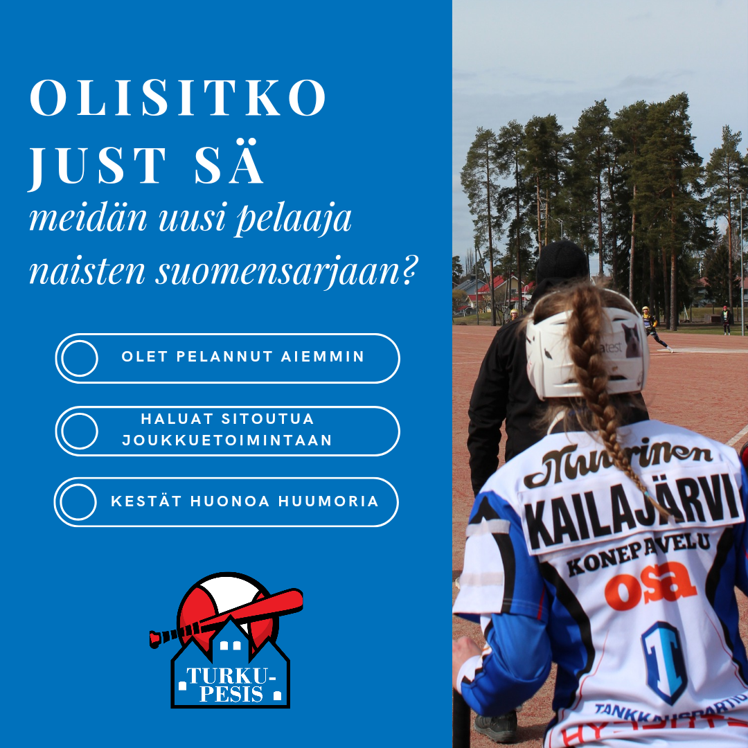 Jos olet aiemmin pelannut pesäpalloa, olet valmis sitoutumaan joukkuetoimintaan ja pelaaminen suomensarjassa kiinnostaa, tule mukaan! Turku-Pesiksen naisten joukkue tiivis ja motivoitunut porukka,…