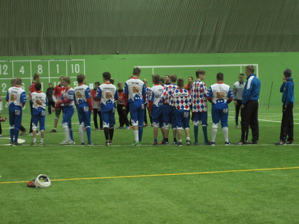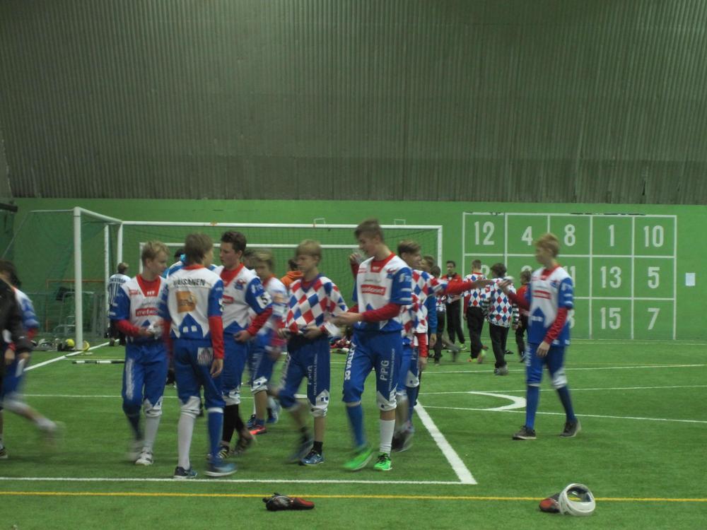 Ottelun jälkeen pelinjohtaja Jani Kapuinen kertoi, että joukkue on treenannut jo lokakuusta asti 4-5 treenikerran verran viikottain. Kun pikku hiljaa pelipaikat alkavat nyt nähdyn kierrrätyksen jälkeen toimia, niin hyvää seuraa. Joukkueen lukkarina pelannut Eero Ahokas alkaa selvästi kotiutua lautasen ääreen ja saa varmasti hyviä vinkkejä eilen hyviä otteita esitelleeltä Verkulta. Työtä tosin koko joukkueella on vielä paljon ja onhan tässä koko kevättalvi aikaa hioa kuvioita ja taitoja. Ryhmässä on tällä hetkellä n. 18 poikaa, joten haastetta valmennuskaksikolla toki on. Joukkue pelaa siis tällä kaudella ensimmäistä kauttaan C-pojissa. Kesällä tavoitteena on pelata Mynämäen poikien kanssa yhdessä leirikarsintasarjaa, jossa pelit kovenee ja tavoitteena on hyvä sijoitus valtakunnallista Nuorisoleiriä silmällä pitäen. Tästä myöhemmin lisää.