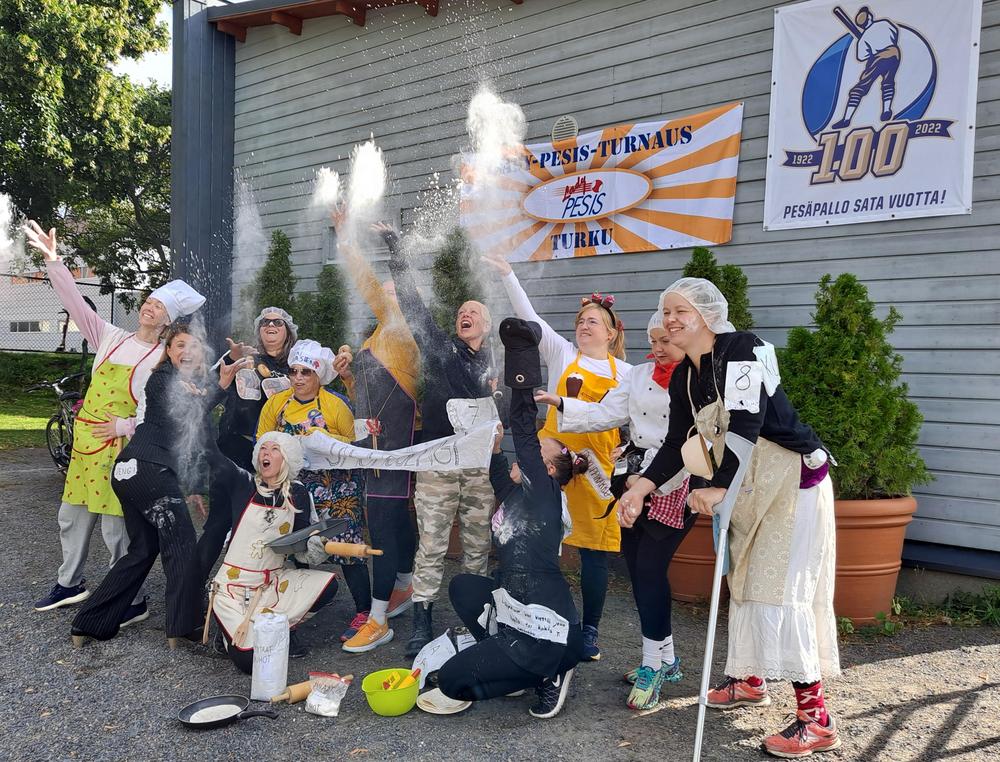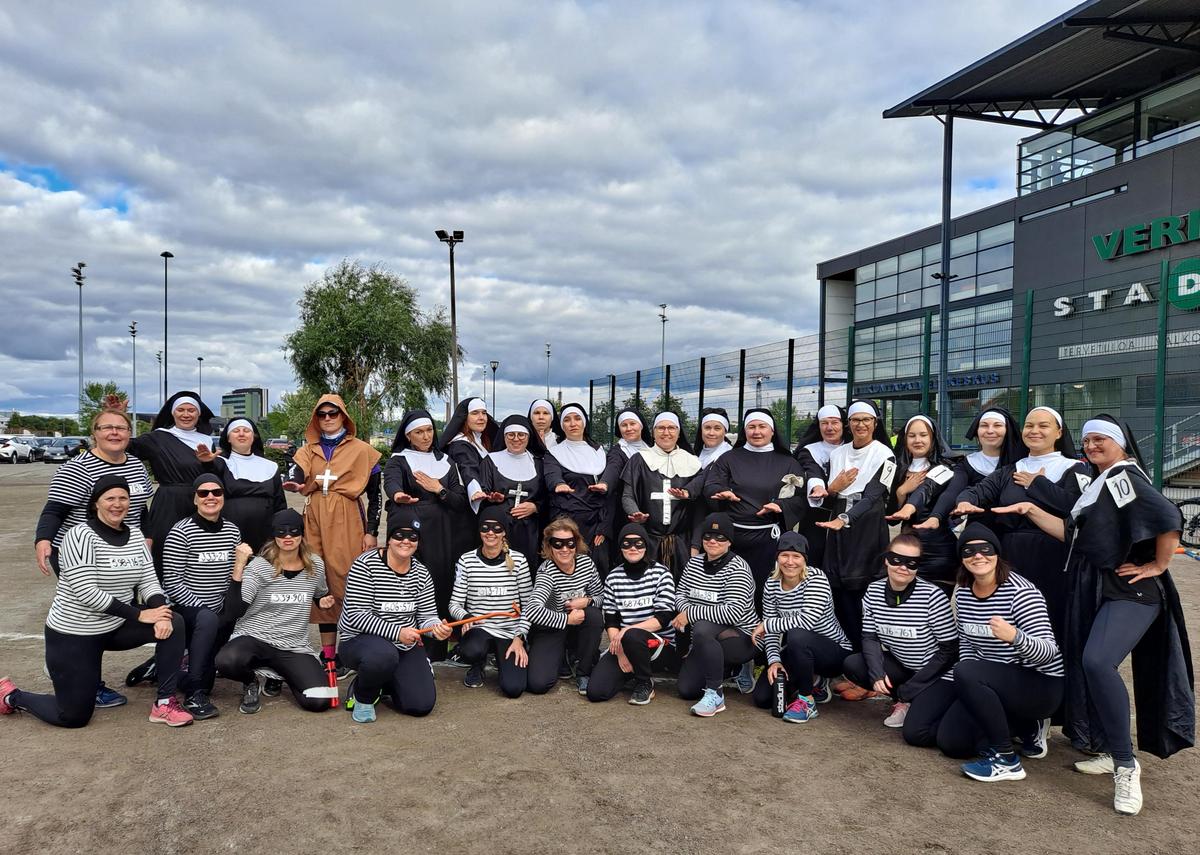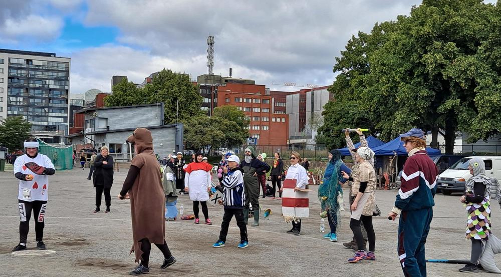 Joukkueiden pukuja oli taas kerran hienoa katsella: oli Ahdottarien viikinkikylä, Sastamalan Jauhojengi ja Marinit ja Uunot eli vinkkiä oli otettu ajankohtaisista asioista.
