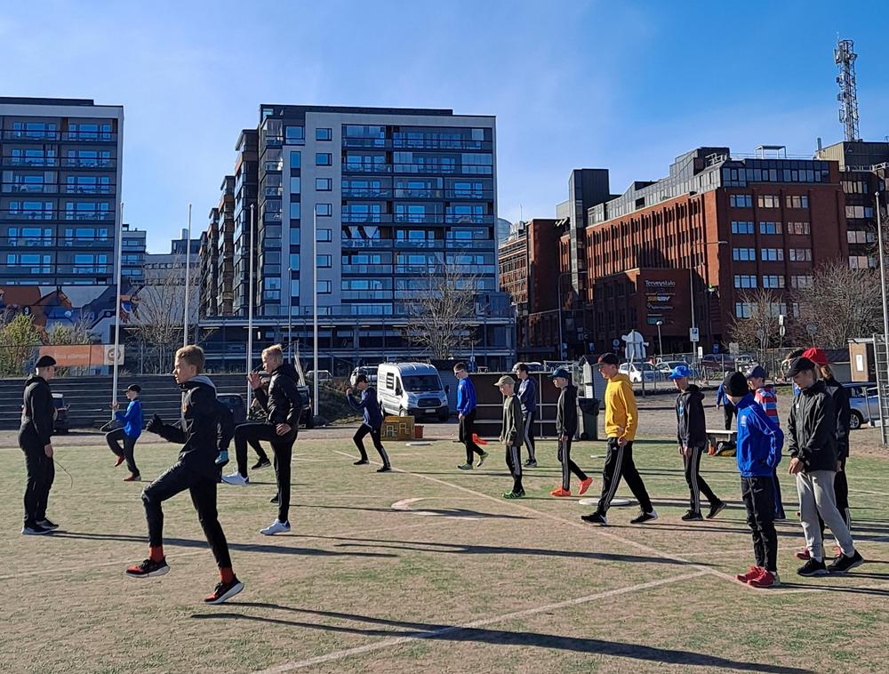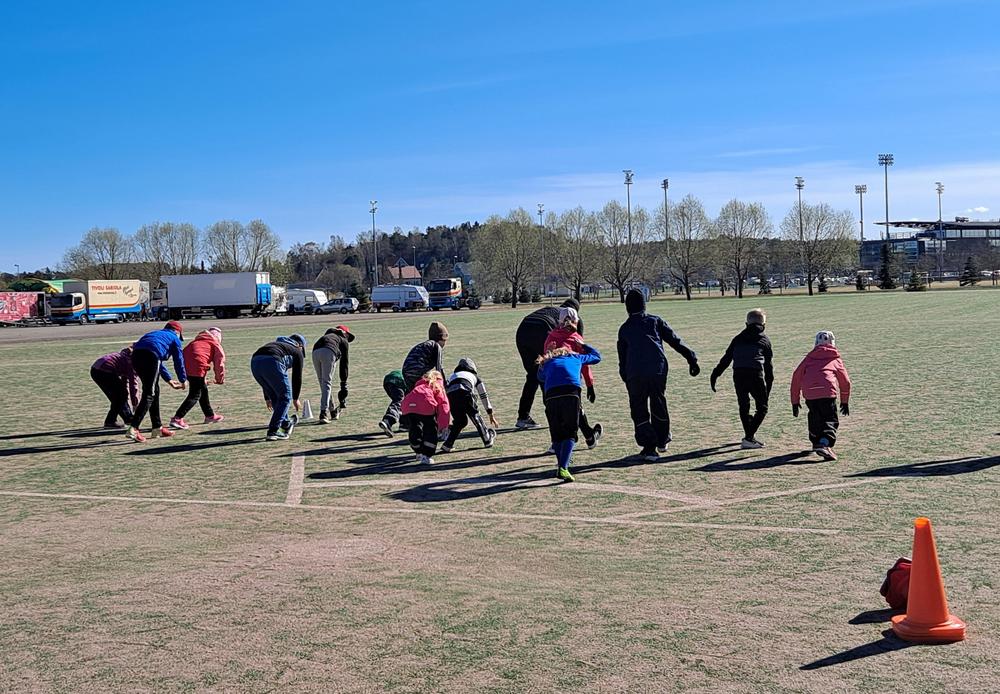 Vanhempien ryhmässä tehtiin paljon koordinaatiota parantavia harjoitteita. Tässä iässä pituuskasvu tuo omat haasteensa raajojen hallinnassa. Tässäkin ryhmässä tehtiin ahkerasti kaikki harjoitteet ja niitä voi aina tehdä myös itse omatoimisesti vaikka kotipihalla. Eteneminen pelissä on yksi tärkeimpiä elementtejä, eikä siihen käytetty energia ja treeni mene koskaan hukkaan. Juoksut ratkaisevat ja niitä on myös kiva tuoda kotipesän ja yleisön hurratessa.
