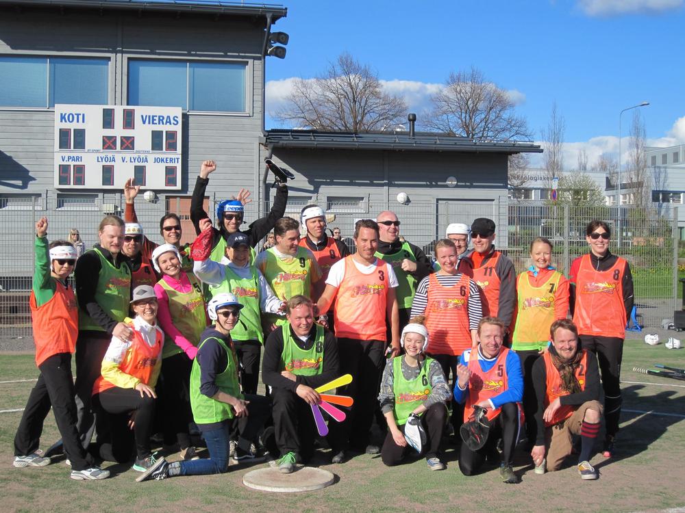 Pelin jälkeen kentälle kirmasivat 40-v. synttäreitään viettävä Jussi Pyysalo ystävineen. Jussihan toimi seuran puheenjohtajana usean vuoden ajan ennen siirtymistään Superpesis Oy:n toimitusjohtajaksi. Jussia muistettiin myös, lahjaa luovuttamassa Anne Aatola ja Sirpa Helin. Itse ottelu sujui hienosti syntymäpäiväsankarin joukkueen niukan 5-2 voiton myötä. Onnittelut vielä Jussille koko seuran puolesta!