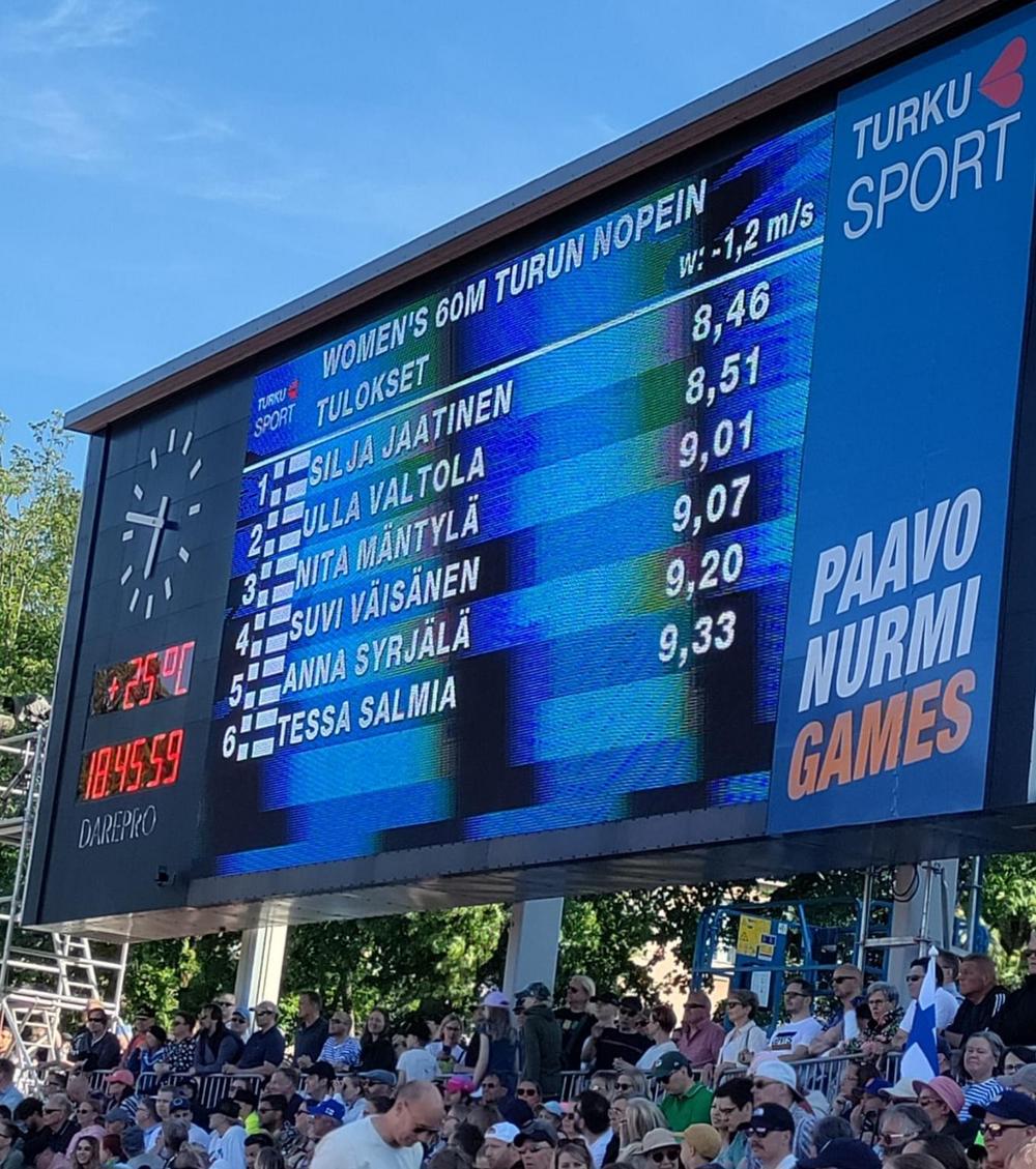 60 sileän pyrähdyksessä Turku-Pesistä tällä kaudella edustava Nita sijoittui kolmanneksi hienolla ajalla 9,01.