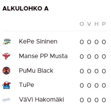 Katso Alkulohko A ottelut tästä ja kirjoittamalla hakukenttään TuPe saat näkyviin kaikki peliajat...