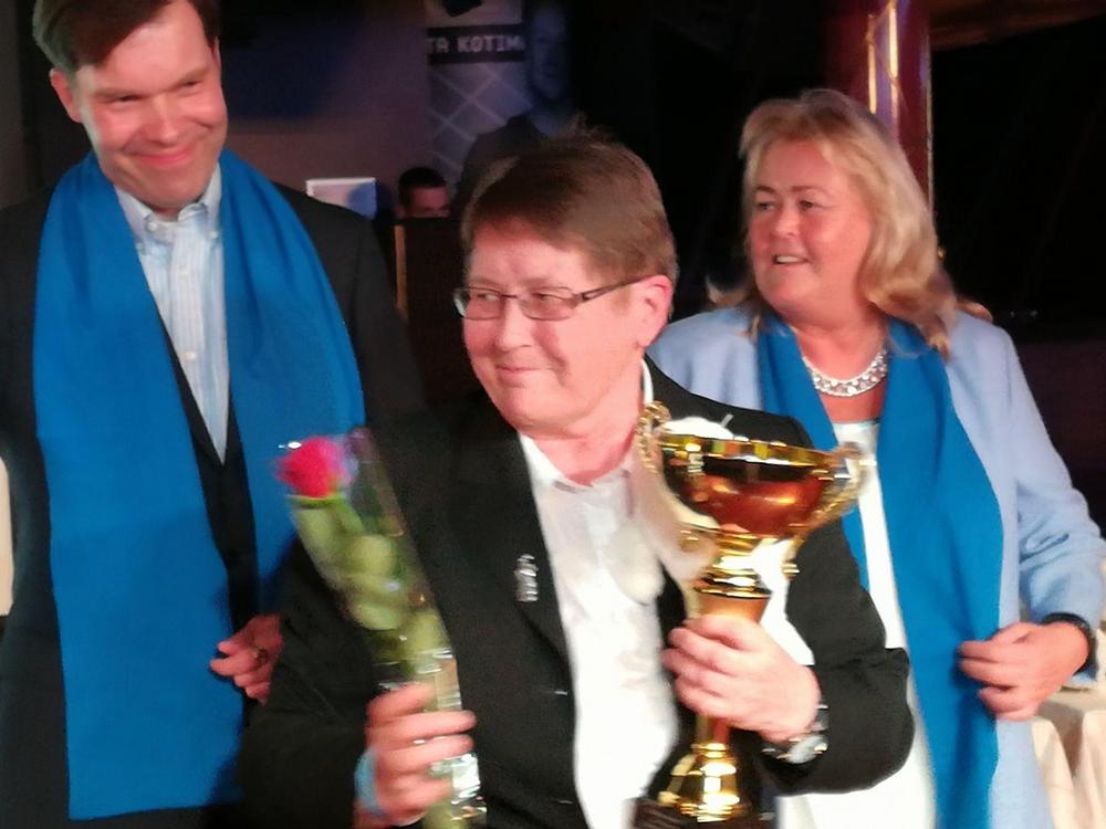 Kuvassa turkulaisia palkittuja: Matias Laukkanen (vas.)/vuoden tuomari, Lauri Saarni/vuoden poikatuomari, Anne ja Sirpa ottivat Turku-Pesiksen puolesta vastaan vuoden kunniatekopalkinnon Suurleiri- ja World Cup -järjestelyihin liittyen.