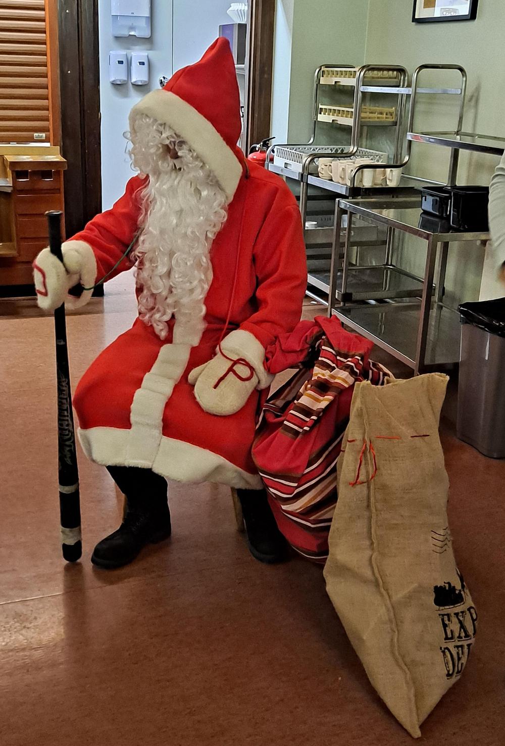 Jännitys tiivistyi, kun illan odotetuinta vierasta- Joulupukkia - odotettiin saapuvaksi heleän joululaulun saattelemana. Pukilla olikin täysi työ jakaa kaksi säkillistä paketteja ja onnelliset juhlijat alkoivat pakata kamppeitaan kotiinlähtöä varten.
