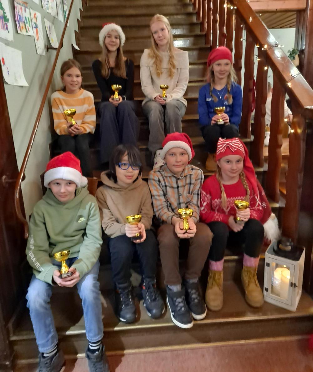 Palkintojen jaon jälkeen vuorossa oli glögi ja joulutorttu. Samassa yhteydessä raati oli valinnut piirustuskisassa viisi palkittavaa ja pikku herkkupussit päätyivät onnellisiin käsiin.
