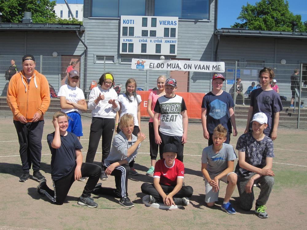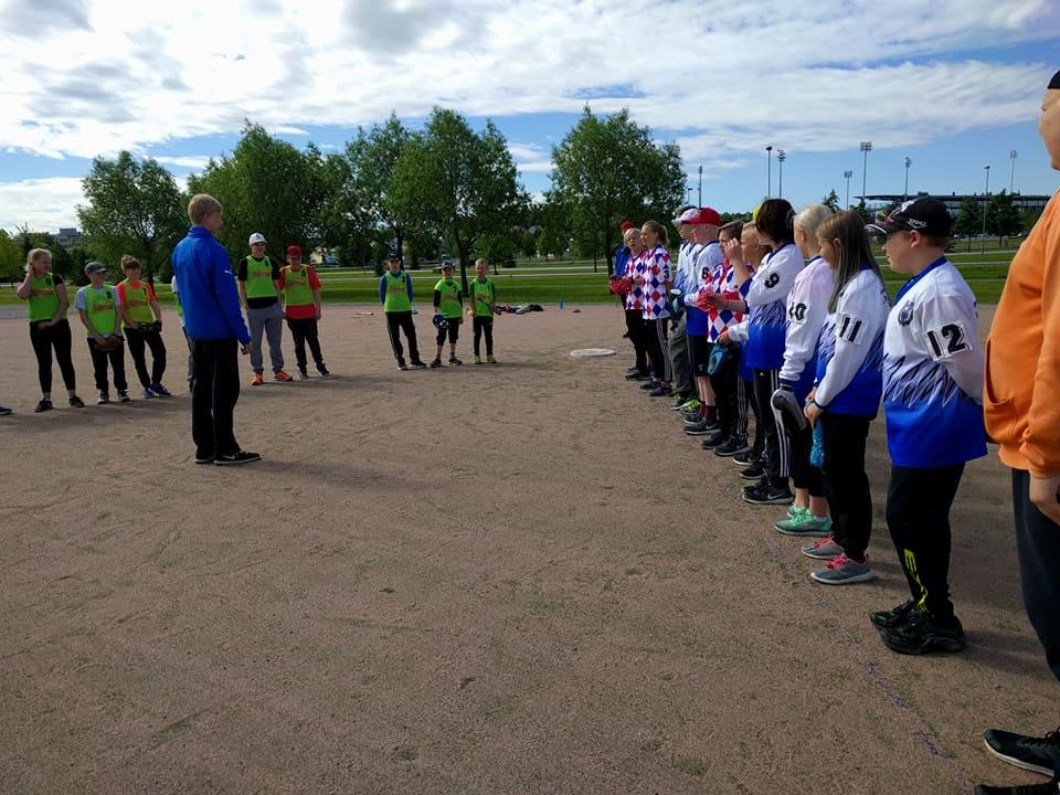 Aamun ensimmäiset pelit aloitettiin hienoisessa tihkusateessa, mutta pikku hiljaa aurinko näyttäytyi ja turnaus saatiin vietyä läpi helteisissä oloissa. Pesiskoululaisia Kupittaalla tänään lähes sata kahdeksan joukkueen voimin.