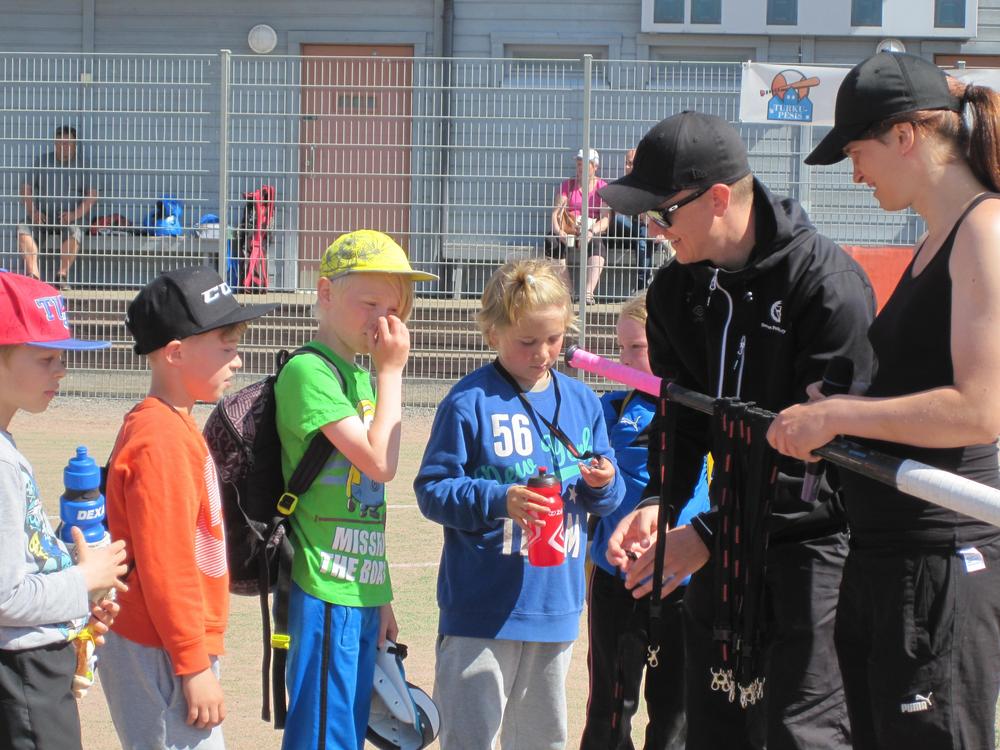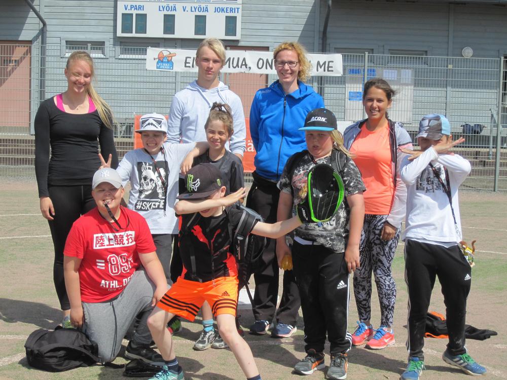 Pelien välissä oli järjestetty temppurata, jossa sai kokeilla heittoa, lyöntiä ja syöttöä. Pienille pelejä tuli 2, isommille kaikille 3. Pelejä kaikkiaan 11, joissa tehtiin yhteensä 257 juoksua! Pelitaidot oli hallussa ja kenttää kierrettiin tiuhaan tahtiin. Pelien välillä ehdittiin vähän levätäkin ja nauttia eväistä.