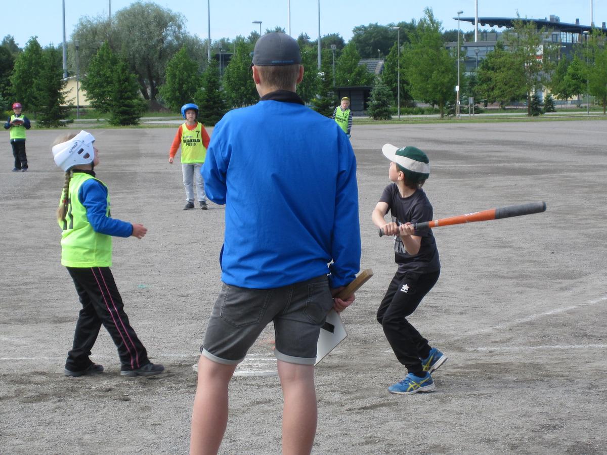 Pelien välissä oli järjestetty temppurata, jossa sai kokeilla heittoa, lyöntiä ja syöttöä. Pienille pelejä tuli 2, isommille kaikille 3. Pelejä kaikkiaan 11, joissa tehtiin yhteensä 257 juoksua! Pelitaidot oli hallussa ja kenttää kierrettiin tiuhaan tahtiin. Pelien välillä ehdittiin vähän levätäkin ja nauttia eväistä.