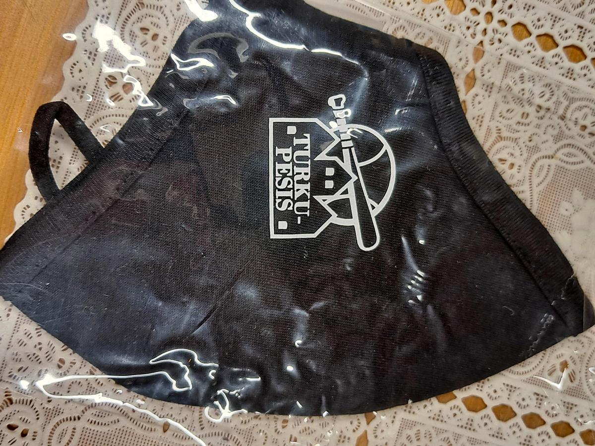 Seuran omat logolla varustetut maskit pelaajien turvaksi