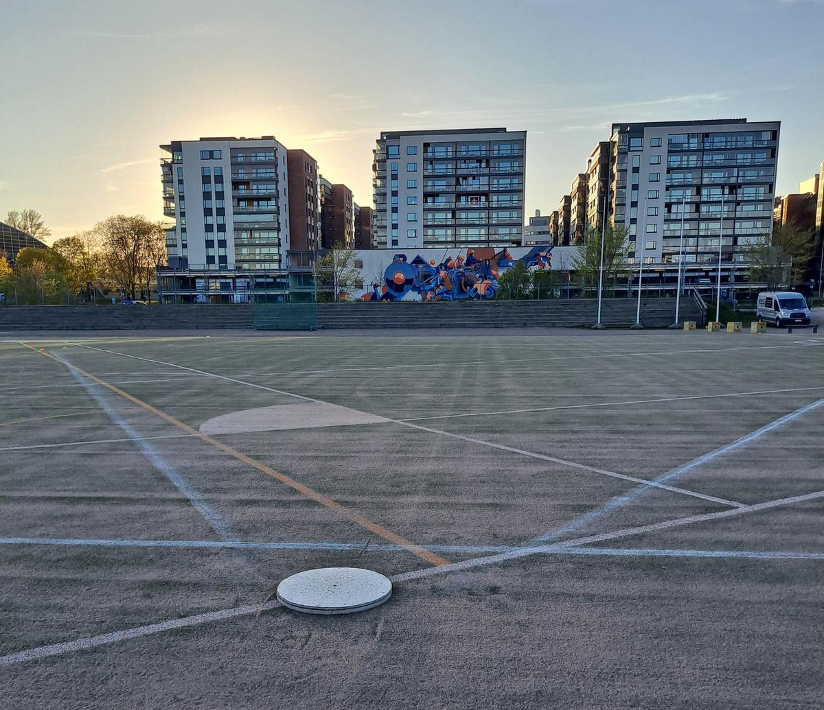 Autojen parkkipaikkaa rajattiin siten, että puukaatsomon eteen ei pääse parkkiin, koska se on pelikentän jatketta.