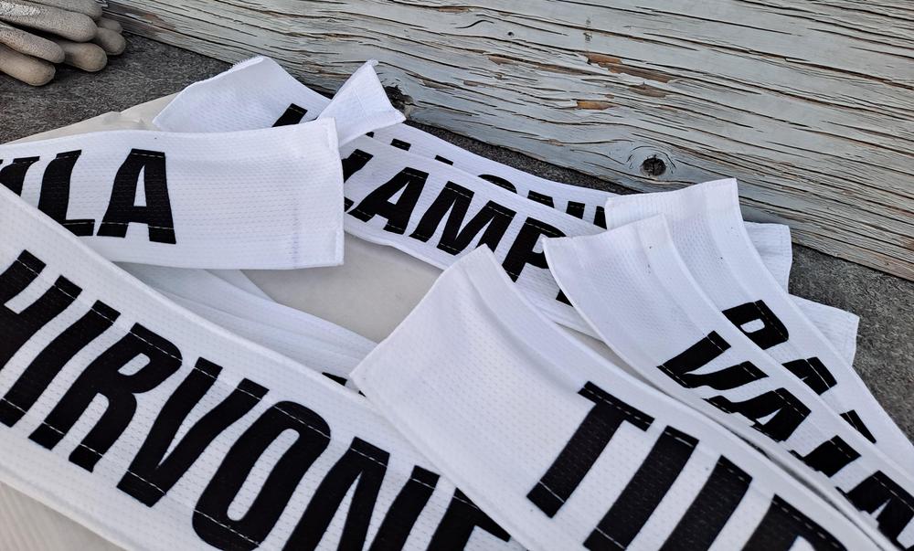 Turnaus alkaa lauantaina klo 11 ja päättyy klo 13.00 eli sillä välillä kannattaa käydä kentällä katsomassa pienten riemua. Sirkka oli saanut postipaketin, jossa on uusien pelaajien nimilaput ja ne laitetaankin heti selkään tänään.