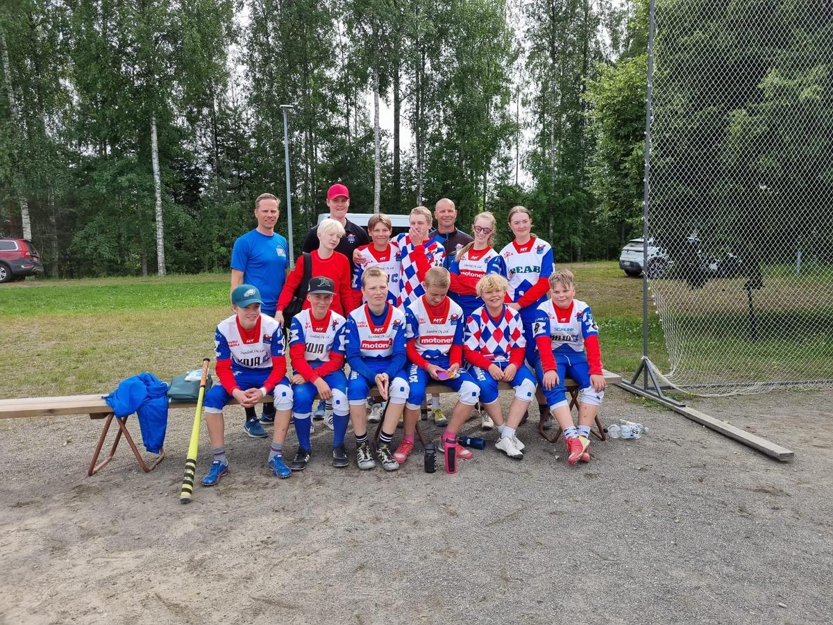 Sijoitus alkulohkossa on kolmas ja jatkopeli sijoista 9-16 alkavat meidän osalta klo 15 ja vastassa todennäköisesti Oulun Lippo. Voitto tuli luvuin 10-3. Jatkolohko G pelit lauantaina Köyliön Lalleja (voitto 5-9) ja Puijon Pesistä (voitto 2-11) vastaan.