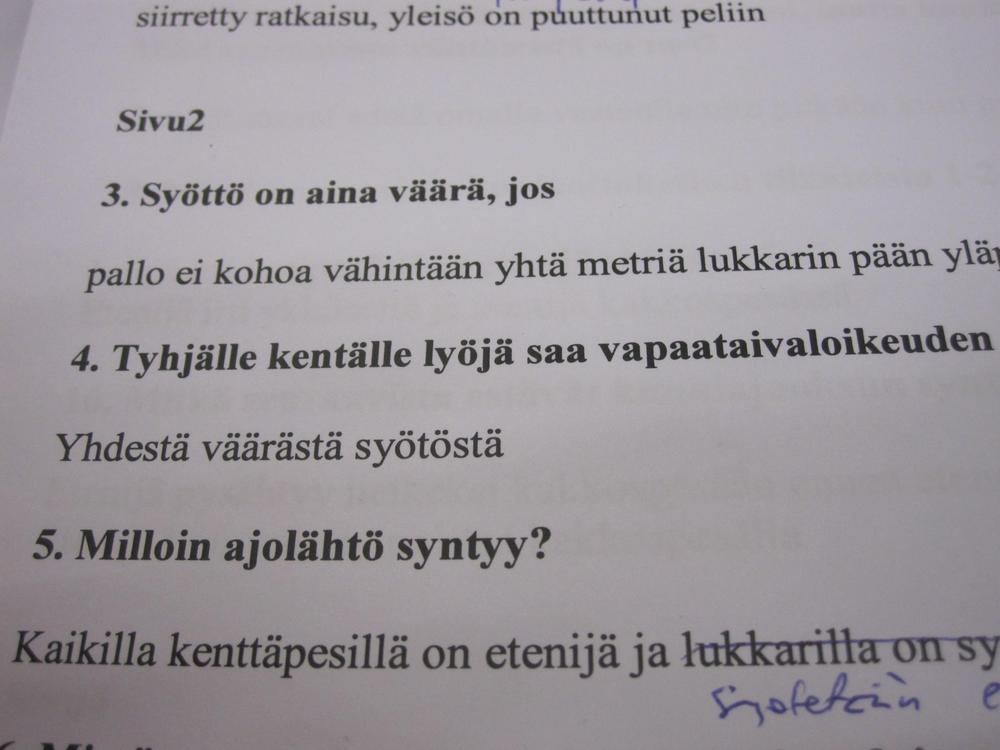 Milloin lyönti on laiton? miten valmistaudun peliin? mikä on oikea syöttöasento... tähän saatiin hyvä muistisääntö: "asento on liikkumaton olotila" kun Jesse vertaili armeijan koulutukseen...Siirretty ratkaisu, yleisö puuttuu peliin (tai pallopoika tai pallopojan juomapullo)... Mielenkiintoista...
