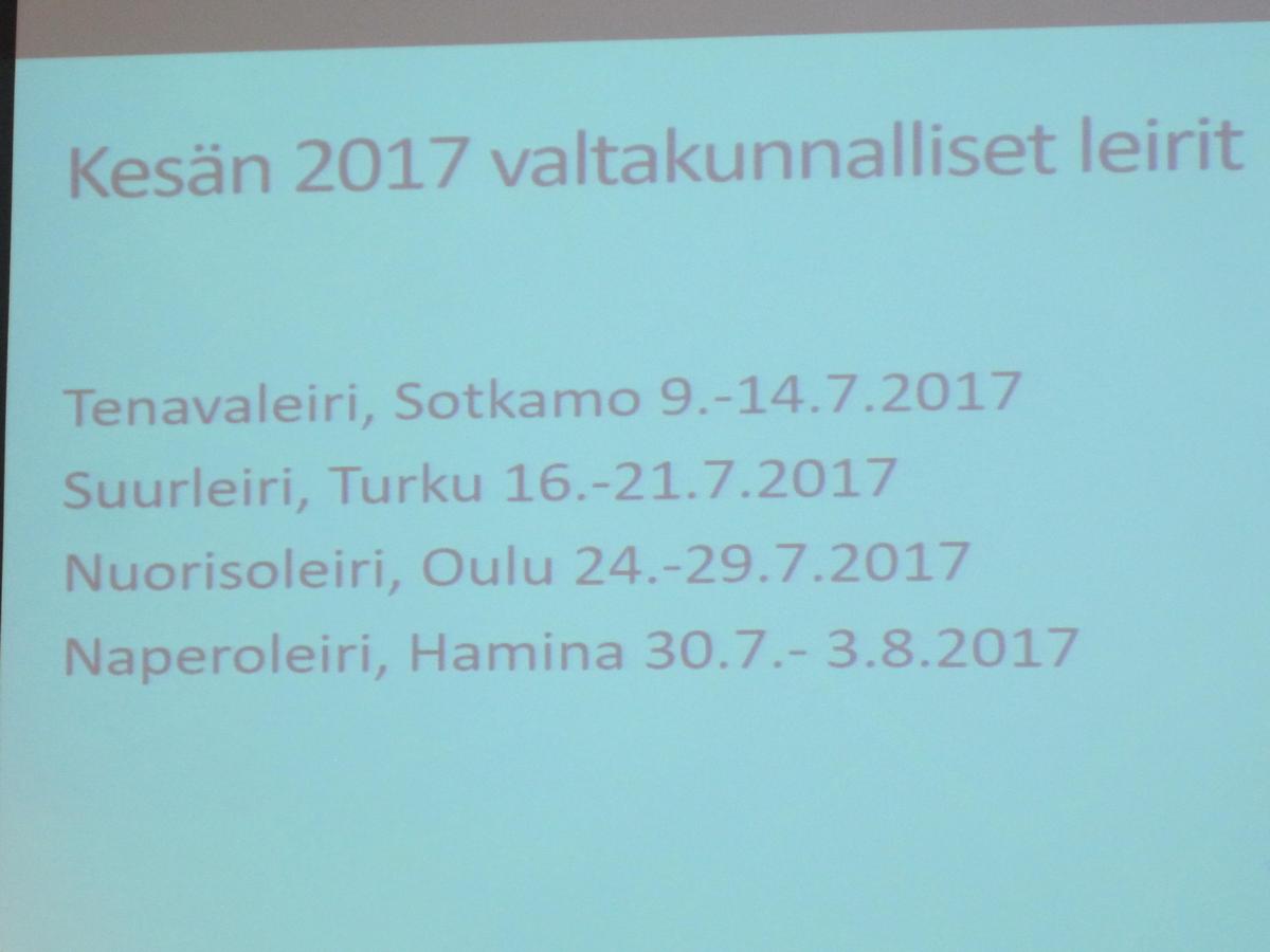 Seura oli viimeksi tekemässä valtakunnallista Nuorisoleiriä v. 2013 Turussa ja tästä on vielä hyvässä muistissa ne asiat, jotka silloin kaipasivat kehittämistä. Näihin onkin nyt jo puututtu ja asioita tullaan järjestelemään järkevämmin kaikki resurssit huomioiden.